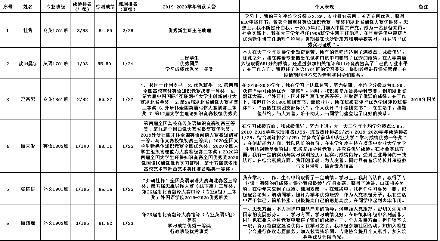 tyc122cc太阳成集团2020年本科生国家奖学金初审名单公示