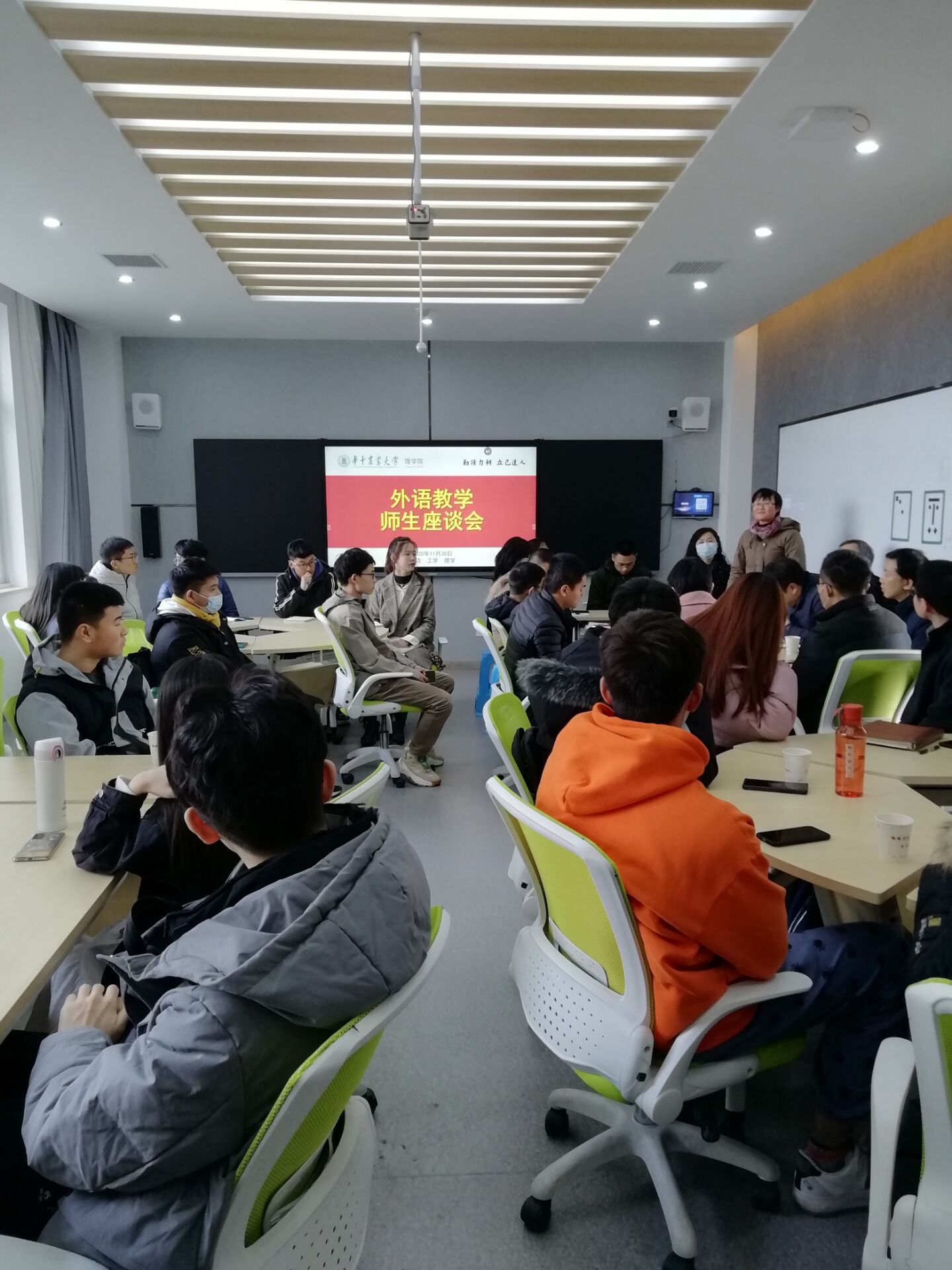11月30日下午在逸夫楼B221召开公共外语教学师生座谈会。参加座谈会的有tyc122cc太阳成集团、理学院、工学院分管教学副院长、教师代表、班主任代表和各年级学生代表,tyc122cc太阳成集团党委书记胡守强参加了会议。座谈会由理学院副院长成协设主持。tyc122cc太阳成集团副院长秦发兰指出,此次座谈既是tyc122cc太阳成集团公共外语期中教学检查的一部分,也是进行公共英语教学改革的一次调研。