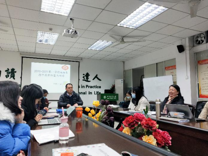11月26日下午,英语系全体教师在人文楼A102会议室开展了2020-2021学年第一学期期中教学检查研讨会。会议由英语系主任潘不寒主持。