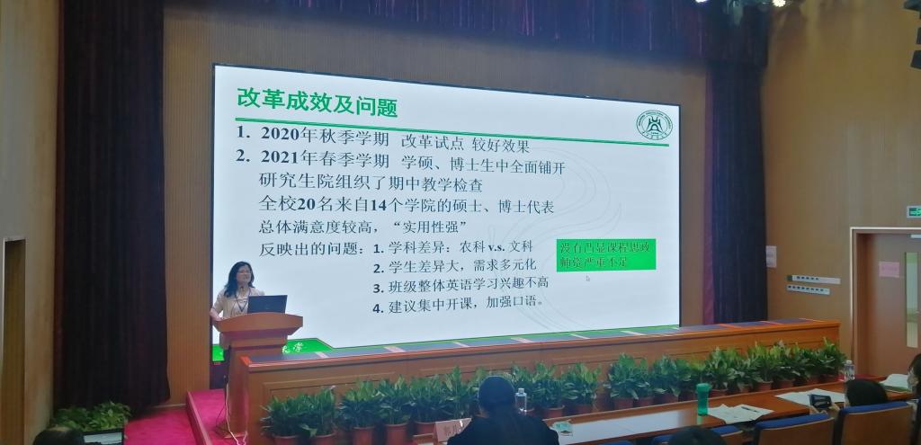 由上海理工大学、人民大学出版社、北京高等教育学会研究生分会共同主办的2021年全国研究生教育高端论坛于5月14-16日在上海成功举办。副院长秦发兰带队参会,公外教学部主任王菲作大会分组报告,介绍了我校研究生公共英语教学改革历史、指导思想及改革成效等。自2020年起,为呼应国家、社会、学校、学科、学生多元化的英语需要,学校开展本研一体化的公共英语课程体系改革与建设,突出整体性和校本特色。
