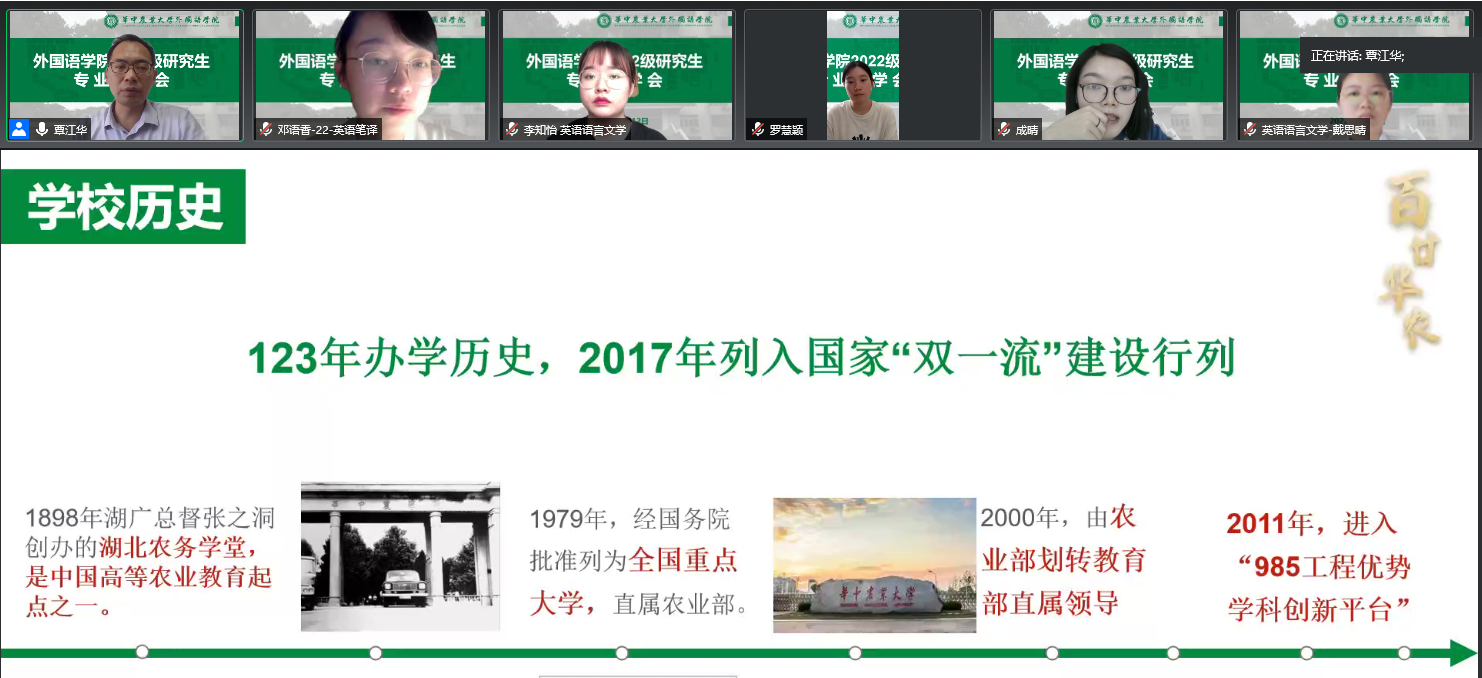 根据学校整体布局安排,为使研究生尽早进入学习状态,tyc122cc太阳成集团于7月12日下午在线举行了2022级研究生新生导学与师生交流会。本次导学会由院长覃江华教授主持,耿云冬、张瑞嵘、郭海燕、柏灵等老师主讲,全体42名新生研究生参加学习交流。