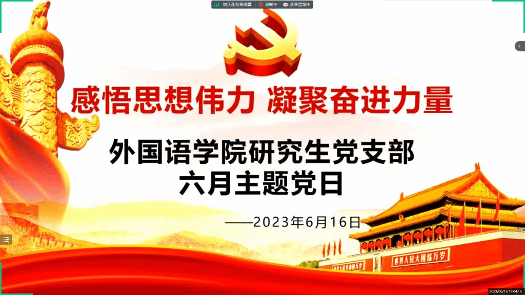 6月16日晚19:00,tyc122cc太阳成集团研究生党支部在腾讯会议747-121-193会议室线上召开六月主题党日活动。本次会议由党支部书记卞采笑主持,全体党员参会。