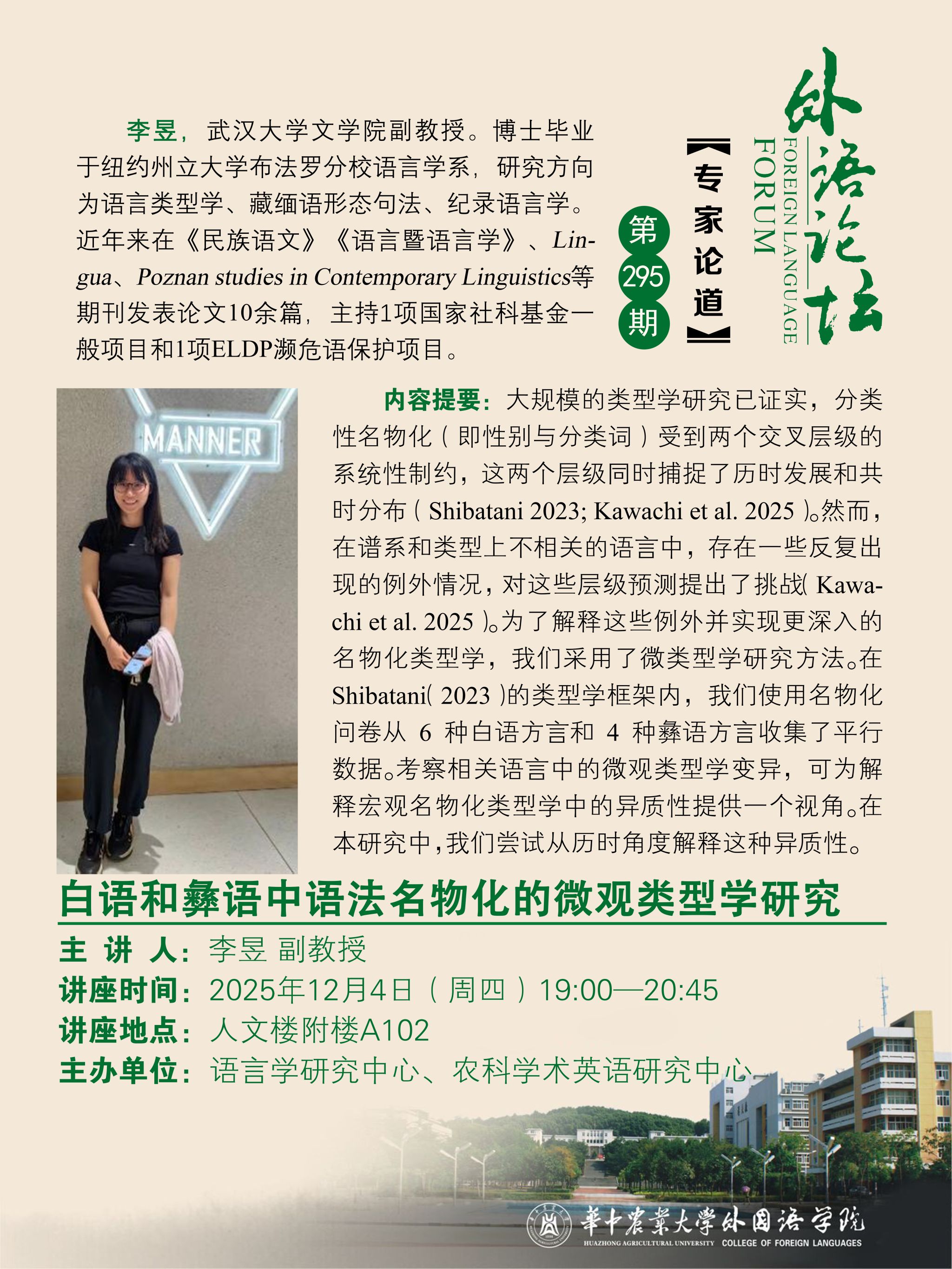 (第295期)白语和彝语中语法名物化的微观类型学研究