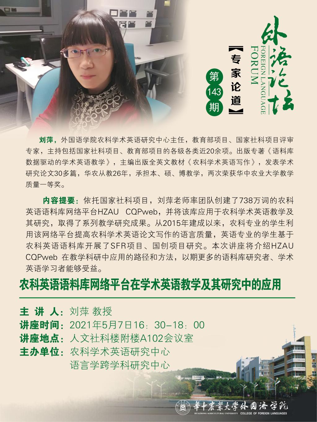 (第143期)农科英语语料库网络平台在学术英语教学及其研究中的应用