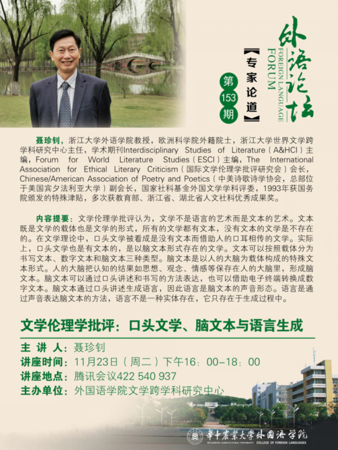 (第153期)文学伦理学批评:口头文学、脑文本与语言生成