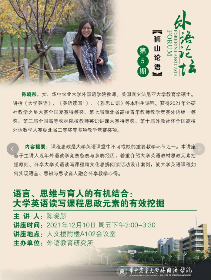 (狮山论语第5期)语言、思维与育人的有机结合:大学英语读写课程思政元素的有效挖掘