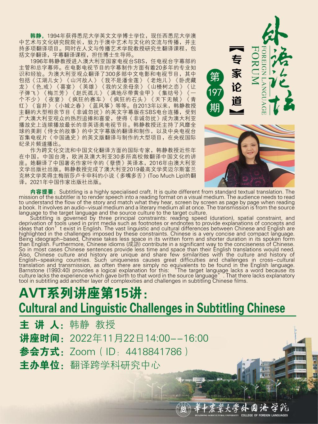 (第197期)Cultural and Linguistic Challenges in Subtitling Chinese Films