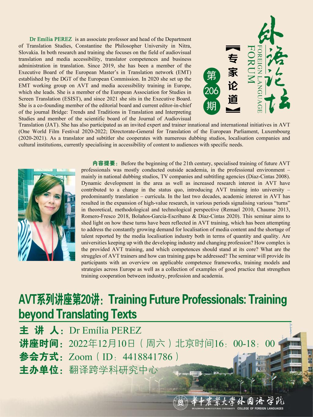 (第206期)Training Future Professionals: Training beyond Translating Texts