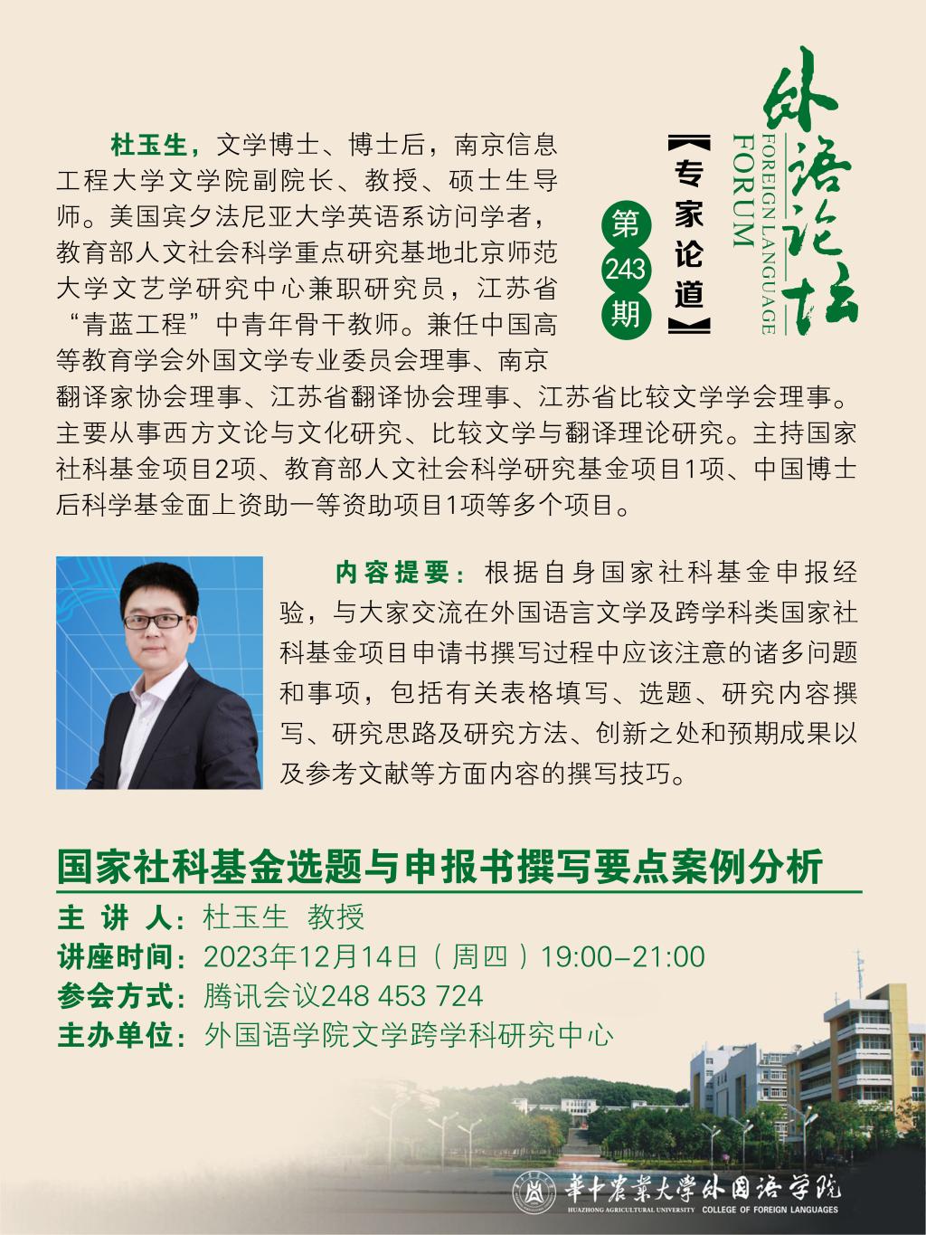 (第242期)文学类国家社科基金项目的选题与申报