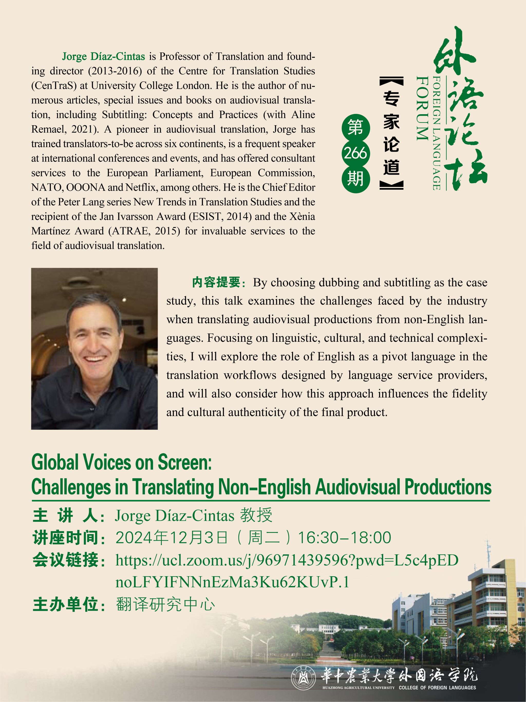 (第266期)Global Voices on Screen: Challenges in Translating Non-English Audiovisual Productions