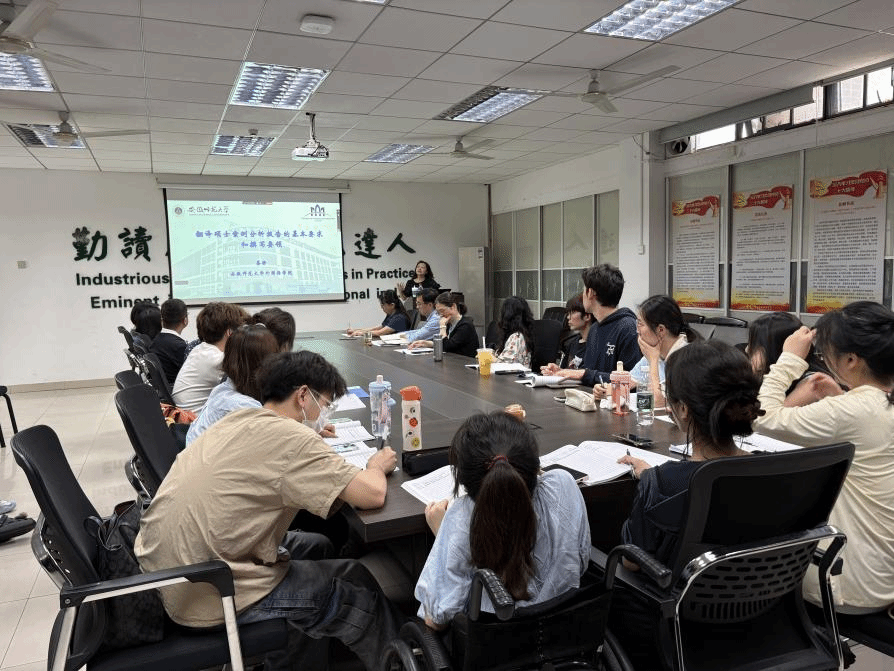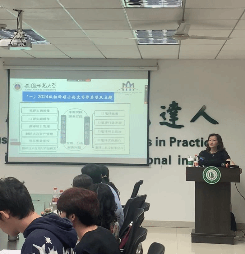 2025年5月30日下午,安徽师范大学tyc122cc太阳成集团副院长、MTI硕点负责人蔡静教授应邀做客我校“狮子山导师学校”,在人文楼附楼A102会议室为tyc122cc太阳成集团师生带来了一场精准指导MTI学位论文写作的专题辅导讲座。本次讲座由耿云冬副院长主持。