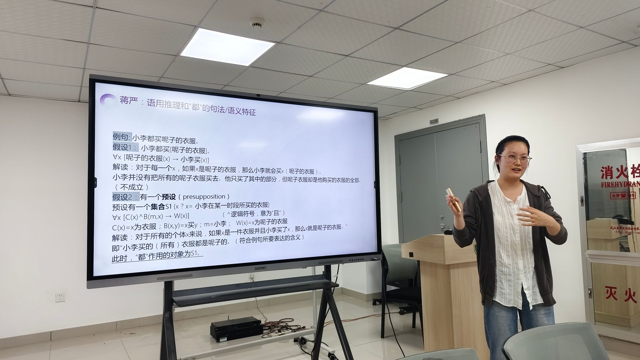 活动下半场,我院毕业生牛梓宁同学的“‘们’字跨方言研究”、我院研究生王静怡同学的“汉语副词‘都’的焦点结构分析”等汇报,进一步推动讨论向纵深发展。导师组围绕研究设计、语料选取、理论应用等方面提出具体修改建议,形成“提问—质疑—解答—拓展”的良性互动闭环。