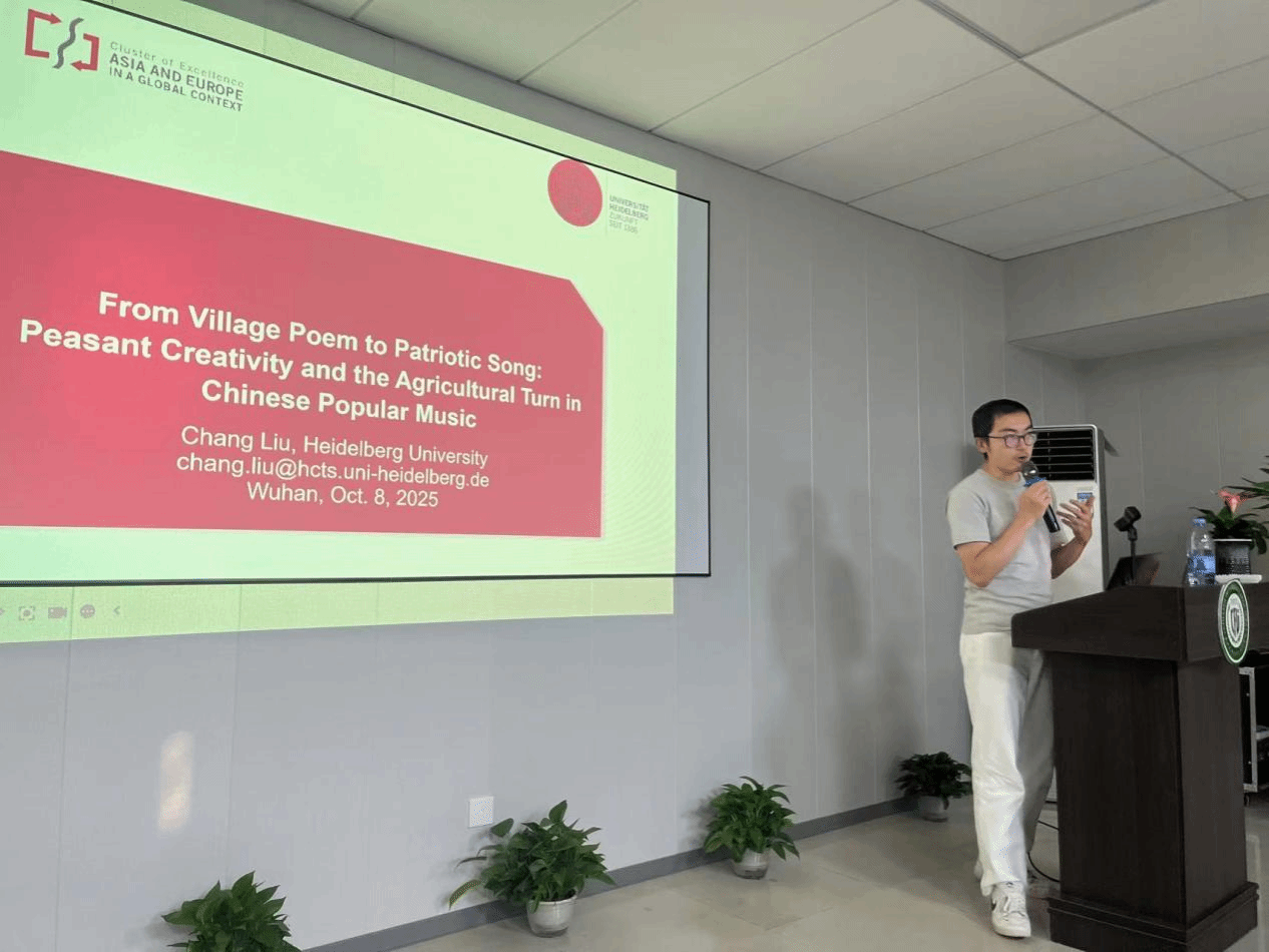 2025年10月8日,海德堡大学跨文化研究中心刘倡博士做客tyc122cc太阳成集团第284期“外语论坛·专家论道”,为师生带来主题为“从乡村诗歌到爱国歌曲:中国流行音乐中的农民创作与农业转向”的学术讲座。本次讲座由tyc122cc太阳成集团文学研究中心主办,我院副教授邓小红、副教授廖衡、副教授李敏锐及其他师生与刘倡进行学术互动交流,周尧老师主持讲座。