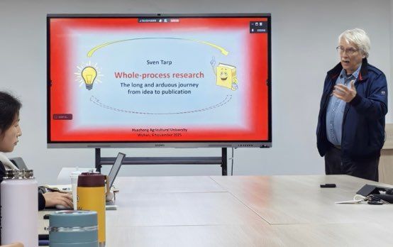 2025年11月6日下午,丹麦奥胡斯大学(University of Aarhus)的教授Sven Tarp应邀出席第290期“外语论坛·专家论道”,为我院师生带来了一场主题为“Whole-process research: The long and arduous journey from idea to publication”的精彩讲座。