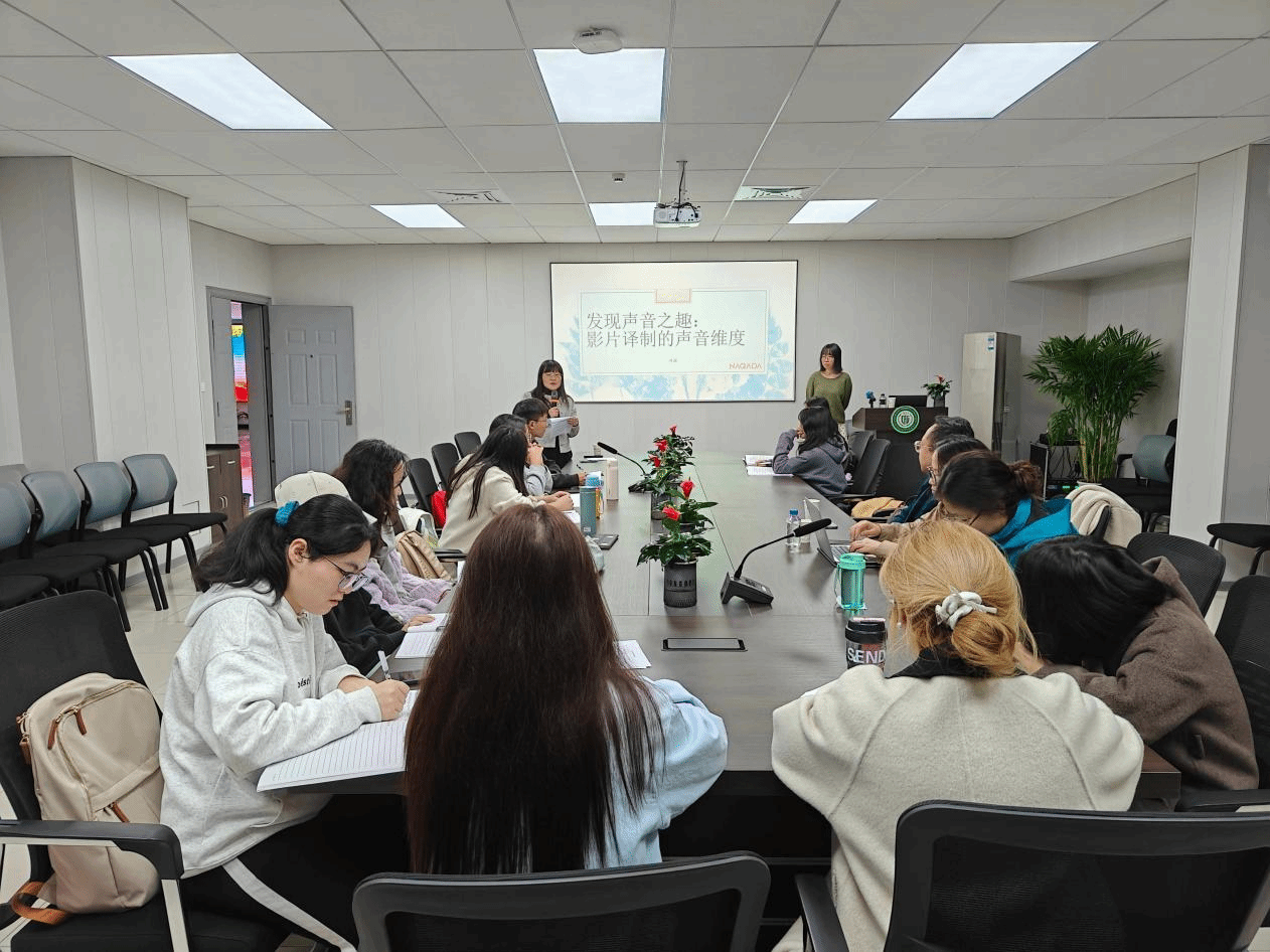 11月10日下午,涅伽达(武汉)信息咨询有限公司代表团访问我院,双方围绕校企合作、人才共育等议题展开深入交流。作为本次交流的核心环节,公司资深译审许诺为师生带来了题为 “发现声音之趣:影片译制的声音维度” 的专题讲座。