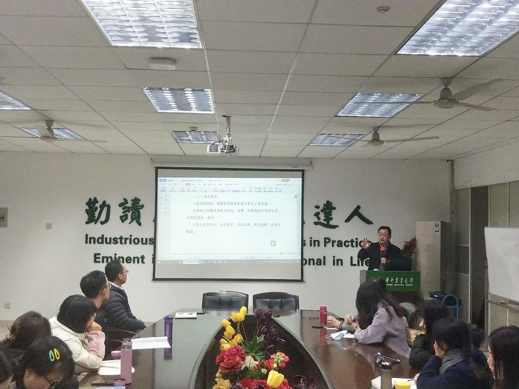 3月10日下午,武汉大学黄敏副教授在人文楼附楼A102作了一场关于“CATTI二级考试解析与备考指导”的讲座。