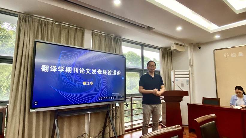 覃江华首先回顾了自己近年来在翻译学期刊发表学术论文的经历,对国内外翻译学期刊如《中国翻译》《上海翻译》《中国科技翻译》《翻译季刊》、Babel、Target、Perspectives的创刊历史、发展历程和载文情况进行了详细的梳理和分析。他指出,每种期刊的办刊宗旨和定位不一样,用稿倾向也各不相同,因此,作者投稿时,需要了解每种期刊的特点才能做到有的放矢。即便是被拒稿,也不要灰心丧气,而是要愈挫愈勇,继续修改完善,并最终得到发表机会,与学界同仁分享和交流研究成果。他讲到,在起步阶段,自己大多选择各类综合性大学学报,后来开始瞄准本专业普通期刊,有了一定学术积累之后,才决定冲击本专业核心期刊、国内外权威期刊,这反映了一个学人的成长过程。