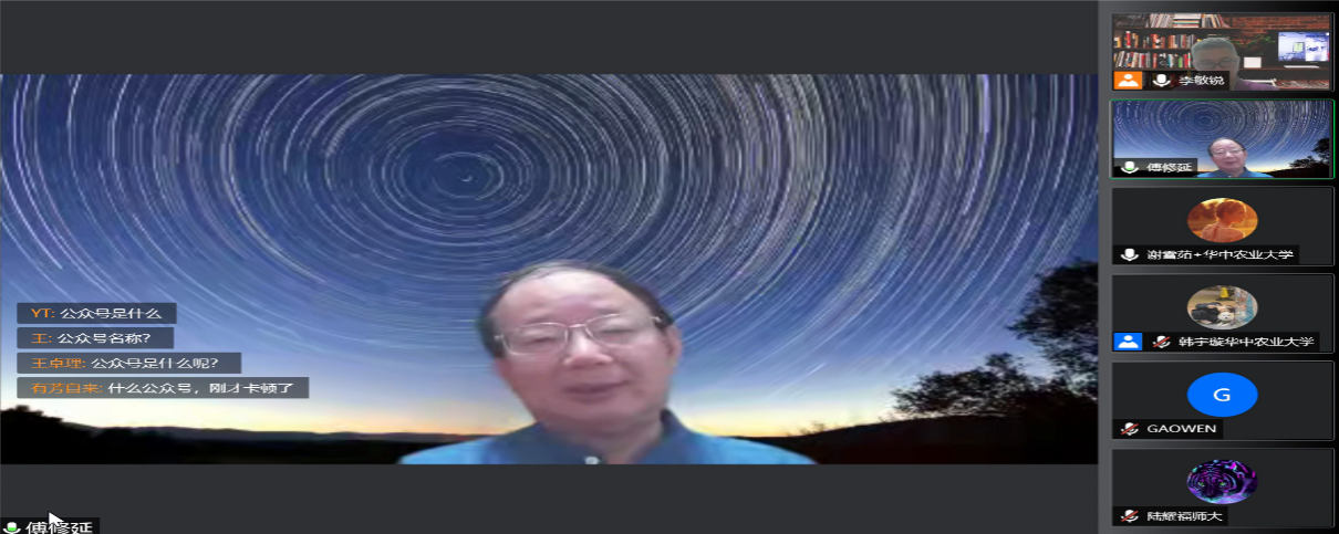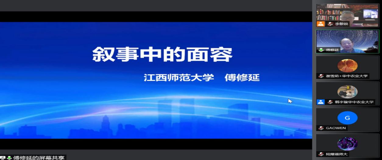 2022年6月3日晚7点,著名学者、中外文论学会叙事学分会会长、江西师范大学资深教授傅修延做客第170期外语论坛·专家论道,在腾讯云端与广大师生进行了“叙事中的面容”专题讲座,院长覃江华教授致欢迎词,讲座由文学跨学科研究中心主任李敏锐副教授主持。