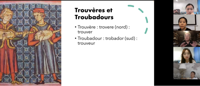 讲座临近结束,莱瑟教授、田婧老师与在线听众做了互动交流。莱瑟教授结合自身所从事的法国文学研究工作,为听众补充了文学领域的本土化研究内容,丰富了师生对法国文学史的认知,拓宽了文学视野。