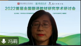 南京大学刘云虹教授就翻译教材编写、使用和课程思政做了发言。她首先指出,翻译在国家各项建设中的重要性日益凸显,国家和社会对高水平翻译人才的需求不断增长,翻译人才培养面临新的挑战,教材建设的重要性和迫切性不言而喻。教育是树人的事业,坚持价值引领和能力培养融合、教材编写与教材使用并重,是教材建设中最重要的原则。刘云虹以实际的案例展现出如何将其有机结合、落到实处,实现翻译教学与课程思政双重目标,进而有效提升翻译人才培养质量。