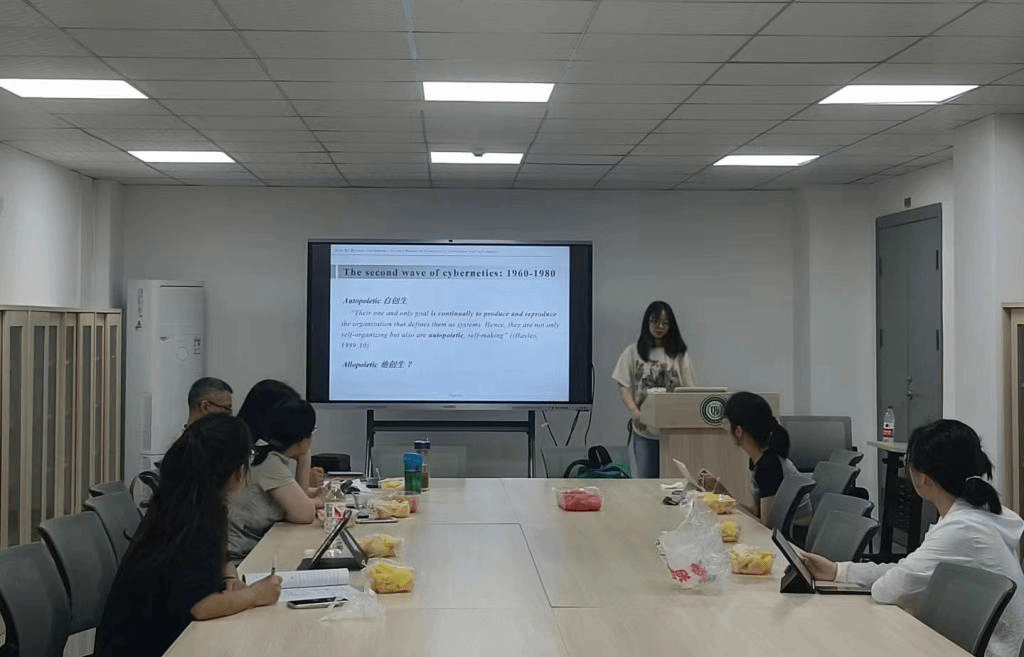 李敏锐老师对赵奕雯的分享和思考表示了认可。他指出后人类研究为文学研究提供了一个向科学转向的思维途径,并可以与非自然叙事、文学伦理线批评等文学理论相结合,文学后人类研究大有可为。刘玉芹老师也分享了她的意见,认为科学的发展对人类发展意义重大,但也是存在边界的;她引用《庄子》“圣人之息以踵”来论证身体与意识是难以分离的;认为一方面我们要敬畏科学的发展,另一方面也要有足够的自信,相信人类有“顺势而为、适者生存”的能力。曾毅老师指出,后人类值得深入研究,鼓励学生将文学与后人类研究进行跨学科互动,接触学术前沿。