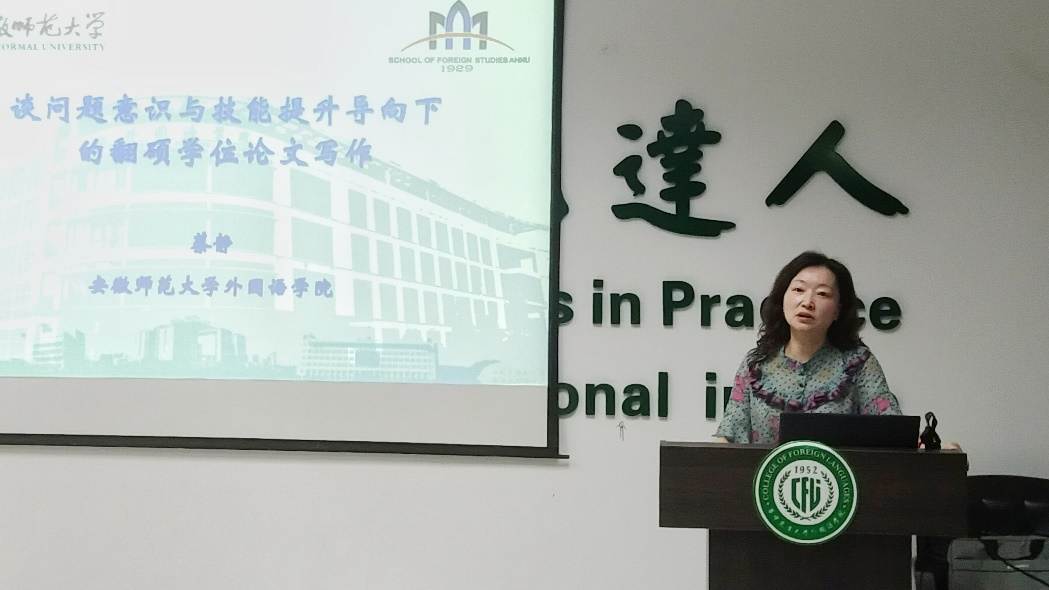 2024年6月2日下午,tyc122cc太阳成集团在人文楼楼A102会议室召开“狮子山导师学校”专题培训。安徽师范大学tyc122cc太阳成集团副院长蔡静教授再次应邀做客“狮子山导师学校”,以“问题意识和实践技能锤炼——翻硕学位论文写作的遵循与导向”展开学术讲座。tyc122cc太阳成集团副院长秦发兰主持讲座并致欢迎辞。学院党委书记冯国林、2023年新聘校内研究生导师、在岗导师代表以及翻硕方向研究生参加了本次学术活动。