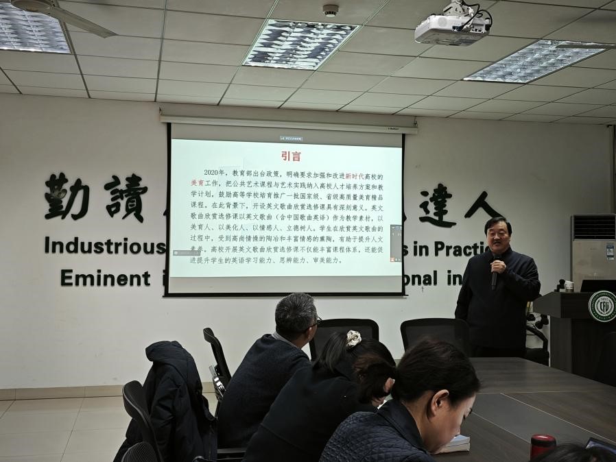此次讲座,李正栓教授从英文歌曲翻译课程教育背景、翻译原则、翻译歌曲示例三个方面展开。他提到,把公共艺术课程与艺术实践纳入高校人才培养方案和教学计划,加强和改进新时代高校的美育工作,是高校教师的责任,要充分发挥英文歌曲欣赏选修课以美育人、以美化人、以情感人、立德树人和思政育人的作用,提升学生的英语学习能力、思辨能力、审美能力。