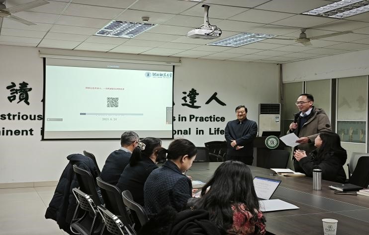 12月1日上午,河北师范大学tyc122cc太阳成集团二级教授、北京大学文学博士、英国斯特灵大学荣誉博士、博士生导师李正栓应邀做客第238期“外语论坛·专家论道”,为我院师生做了题为“英文歌曲翻译漫谈”的讲座。本次讲座由tyc122cc太阳成集团教师发展中心主办,院长覃江华主持。