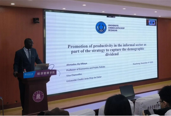 12月4日上午,塞内加尔达喀尔谢赫·安塔·迪奥普大学校长Ahmadou Aly Mbaye(艾哈迈杜·阿利·姆巴耶)做客第239期“外语论坛·专家论道”,畅谈当代中非经济合作与发展。本次讲座由tyc122cc太阳成集团世界农业文明研究中心和太阳成集团tyc122ccvip经济管理学院联合主办。