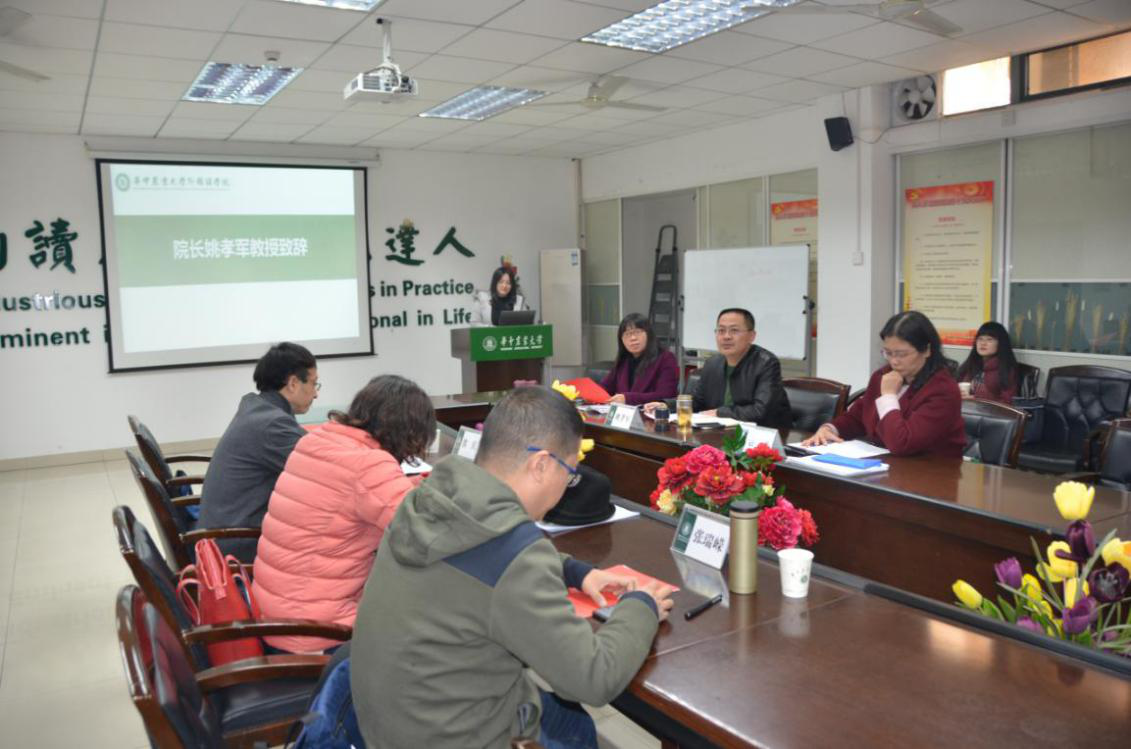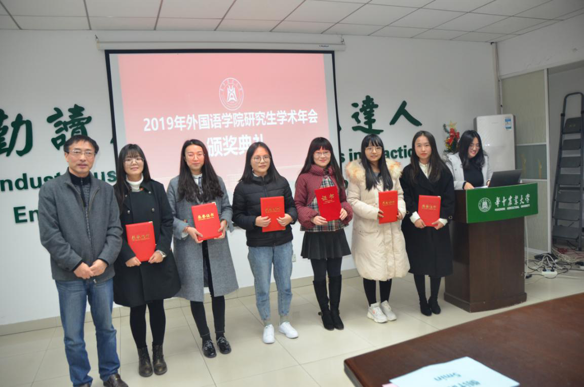 12月13日下午,2019年tyc122cc太阳成集团研究生学术年会总结汇报大会在人文楼附楼A102会议室举行。本次汇报大会由院研究生辅导员涂梦主持,莅临现场的评委老师包括华中师范大学教授熊兵、tyc122cc太阳成集团院长姚孝军、MTI中心主任曾文华、农科学术英语研究中心主任刘萍、英语系副主任袁谦、大学英语部主任张瑞嵘等。全体2019级研究生通过抽签确定了汇报顺序,依次进行了学术研究内容的展示。六个参赛小组历经一个多月的充分准备,在指导老师的帮助下,均顺利完成了本组选题、资料收集、调查研究以及结论分析。