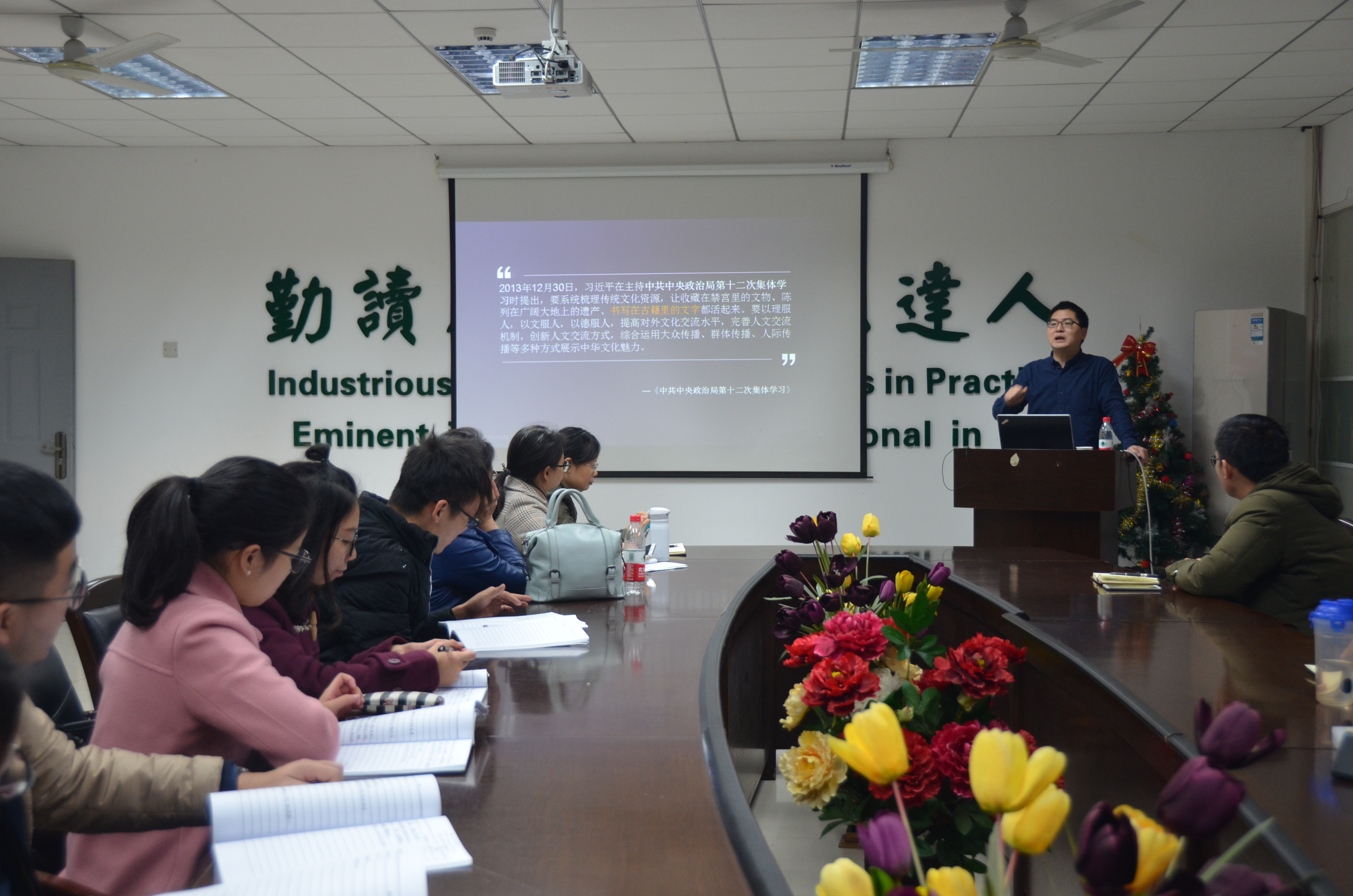 11月22日下午4点,湖南大学tyc122cc太阳成集团李伟荣教授莅临tyc122cc太阳成集团,为我院师生带来了一场题为“外语学科发展与国家软实力的战略思考——从典籍翻译说开去”的讲座。此次讲座由我院覃江华副教授主持。龚献静副教授、张瑞嵘副教授、李艳副教授、郭海燕老师等MTI教育中心老师及2017级MTI研究生参加了本次讲座。