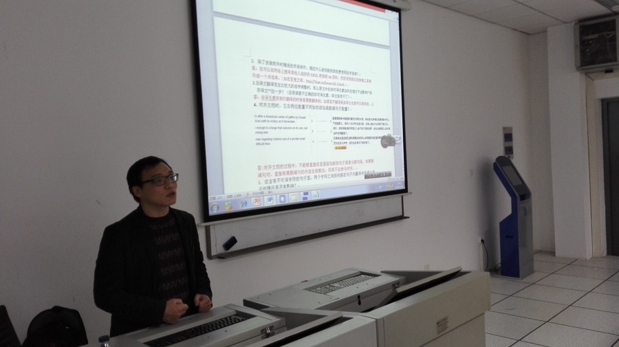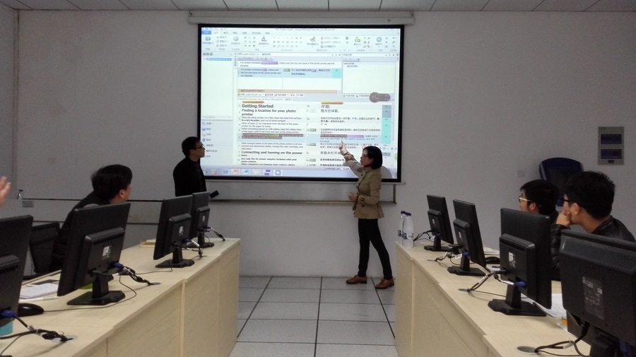 11月16日下午,应tyc122cc太阳成集团邀请,SDL Trados产品技术工程师许仁兴先生在四教A-513机辅翻译实验室做了一场题为“计算机辅助翻译(CAT)在完整翻译流程中的运用”的报告。我校MTI教育中心主任曾文华副教授、副主任覃江华副教授、CAT教师梅婷副教授、上海予尔信息科技有限公司李敏经理等一行4人、2016级翻译专业硕士全体同学和闻讯赶来的本校及兄弟院校师生参加了报告会。