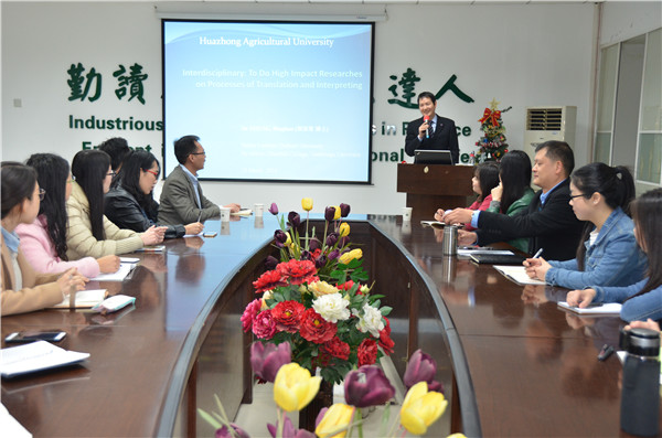 3月25日上午,英国杜伦大学跨文化研究中心主任、博士生导师郑冰寒老师莅临tyc122cc太阳成集团,为学院师生做了一场题为“跨界:做有影响力的口笔译过程研究”的精彩学术报告。副院长杨革新主持了本场学术活动,学院中青年骨干教师、MTI研究生和慕名从武汉大学、湖北师范大学、河南师范大学赶来的兄弟院校老师一起聆听了本场讲座。