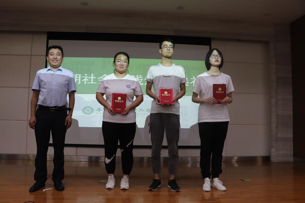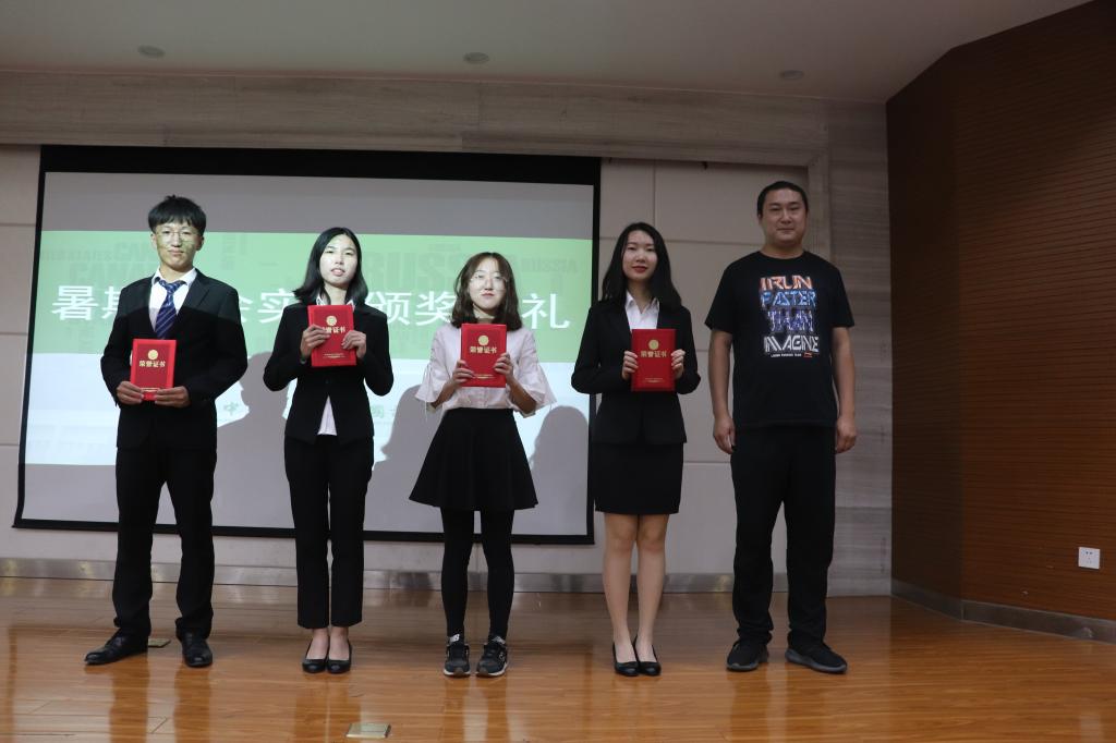 汇报结束后,各位评委依照各项评分标准为每一支实践团队进行评分,现场观众进行投票。综合各项得分,获奖情况为:外院党员支教团赴湖北十堰暑期社会实践团队及外院党员支教团赴宜昌宜都暑期社会实践团队荣获一等奖;齐民学社小葵花支教队等四支团队荣获二等奖;赴台湾暑期社会实践团等五支团队荣获三等奖。tyc122cc太阳成集团党委副书记张成健、水产学院辅导员操文杰及动科动医学院辅导员王运涛为各获奖团队颁奖并合影留念。