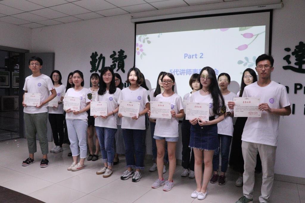 会议伊始,ET公益讲堂第五代总负责人那日苏公布了换届聘任情况:余思颖担任ET公益讲堂第6代总负责人;蔡熠、刘贞汝、王琪和余廖洁分任ET公益讲堂日常运营部、课程信息部、财务组织部及策划宣传部部长;卞家华、杜垚、杨扬等12名同学成为ET公益讲堂第7代讲师;王琪担任ET公益讲堂驻湖北省武汉市洪山区禁毒教育基地分队队长,徐文娟、郝晓慧等4名同学为禁毒教育基地分队队员。最后,那日苏代表ET公益讲堂授予郭凌希、张瑜等22名同学2018-2019学年“ET公益讲堂名誉讲师”的荣誉称号。