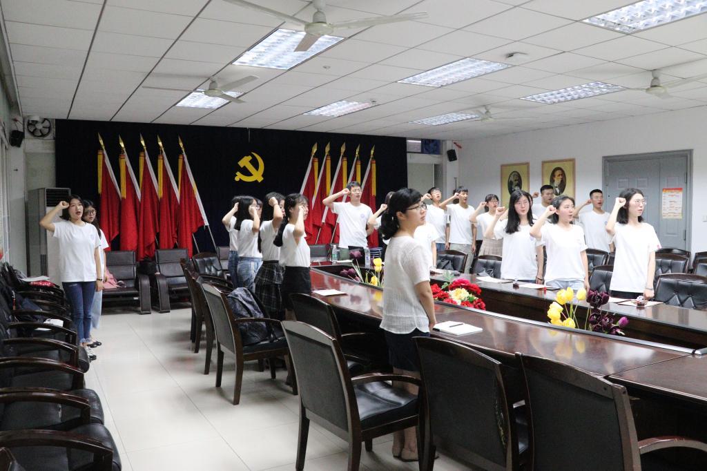 换届仪式过后,那日苏带领全体ET成员慷慨激昂地进行宣誓:弘扬志愿精神,强化奉献意识。服务广大学员,体现外院水平。立道如山,行道似水。天道酬勤,吾道不孤!