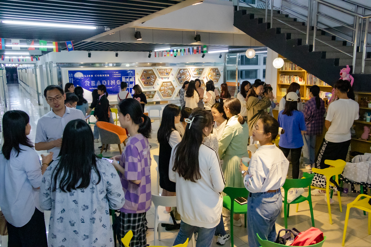 521日晚19点,tyc122cc太阳成集团在外院A128报告厅外开展了以“走进阅读,感悟人生”为主题的外语角活动,公共外语教学部的王菲、王英振等老师与来自多个学院的口语及阅读爱好者一起,自由分享了阅读感悟,用英文谈论着学习心得,现场气氛明快惬意。