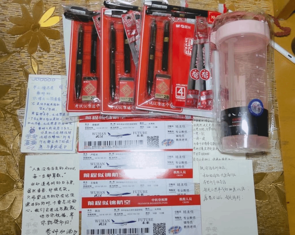 本次礼物包括为考研同学准备的文具“福袋”,为非考研的同学准备的爱心水杯,由学弟学妹亲手写下的贺卡和为每个同学准备的tyc122cc太阳成集团个人专属的“机票”,寓意是祝福每个外院学子考研顺利,前程似锦,鹰飞鱼跃,鹏程万里。