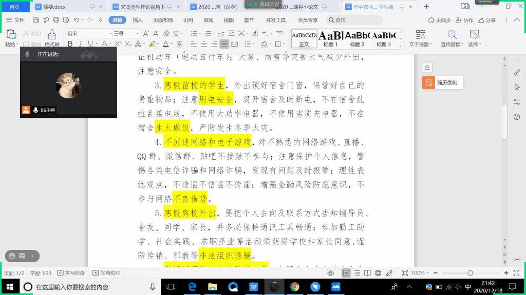 寒假将近,为提高大家的安全防范意识和能力,tyc122cc太阳成集团于12月16日至18日组织全体学生学习《太阳成集团tyc122ccvip安全告知书》,学习由各班班长组织展开并记录存档。