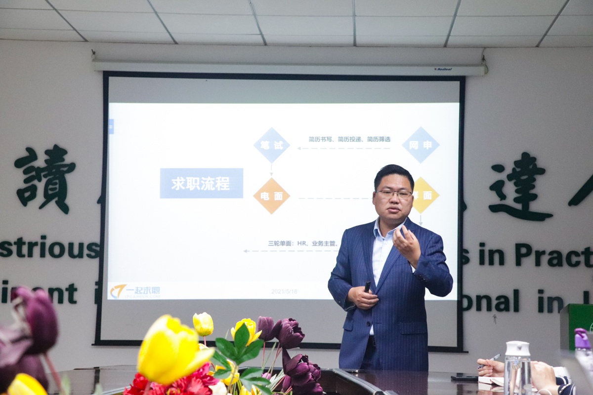 贺老师从事了近十年的企业招聘工作,对于什么样的学生更容易受到企业青睐,什么样的简历更易吸引企业的目光有着丰富的经验。他为学生详细介绍了求职的基本要点,包括求职的流程,什么是秋招、秋招提前批和春招。大企业应聘的流程相对复杂,在第一个流程即网审过程中,贺老师提醒同学们填写内容时不要留空白,要把实习经历之类的表达清楚,因为网审筛选的第一步通常是关键词筛选和打分排名,留白可能会影响系统的操作;到第二步人工筛选时HR会着重关注求职者的实习经历,因此在简历上清楚具体地呈现自己的实习经历十分关键;随后的流程还包括笔试、电面、群面和单面。需要注意的是现在有些企业在群面时会以游戏的形式,如狼人杀、密室逃脱等来筛选自己需要的人才,这就需要大家在前期进行充分了解准备。贺老师还介绍到,许多企业会集中在秋季招聘,即所谓秋招,这些企业品质较高,所提供的岗位较多,而此时很多毕业生会选择考研,所以求职竞争压力相对较小。在秋招之前还会有“秋招提前批”,其流程较简洁,要求相对较低,对缺乏工作经验的在校大学生来说,也是拿名企offer的好时机。