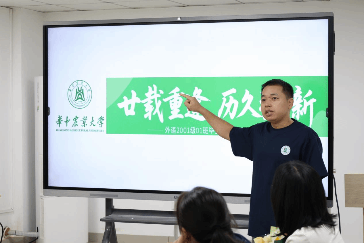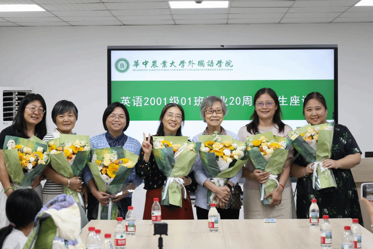 初秋的狮子山,天高云淡,桂子含香。近日,华中农业大学tyc122cc太阳成集团英语2001级01班的近二十名毕业生从五湖四海归来,在毕业二十周年之际重返母校,举办了一场以“廿载重逢,历久弥新”为主题的师生座谈交流会。刘宝珍、杨朝燕、邓小红、曾文华、袁谦、汪晓燕、王艳等老师应邀出席,与校友们共忆青葱岁月,分享人生感悟,现场温情洋溢,笑声与掌声不断。