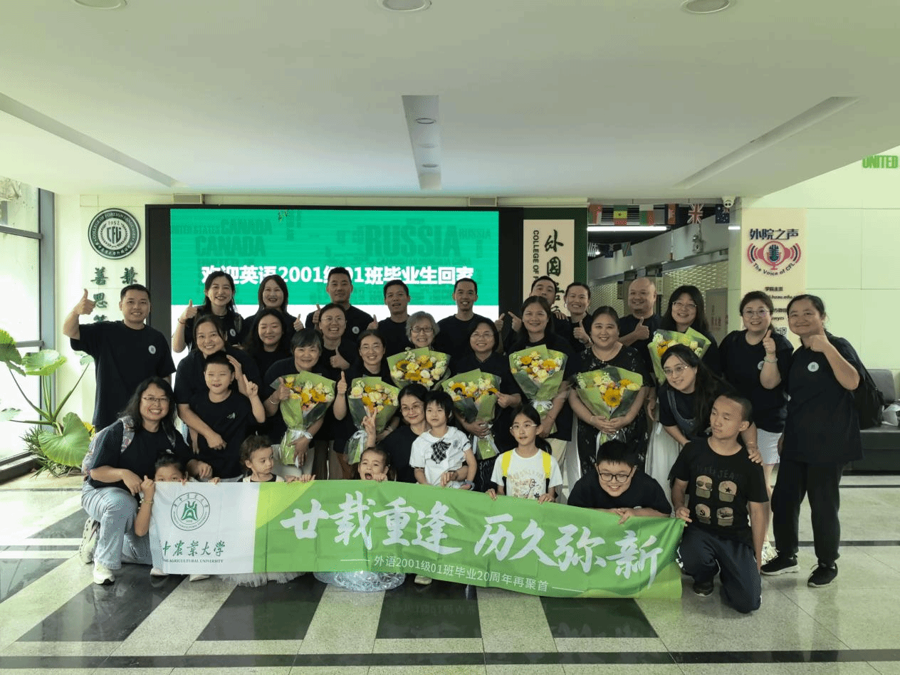 相聚的时光总是短暂,但情谊的纽带因这次重逢而更加牢固。活动最后,在熟悉的班歌旋律中,师生再次合影,定格下这跨越二十年的珍贵瞬间。从青涩到成熟,从懵懂到从容,英语2001级01班的故事,是关于成长、关于时代、更关于永不散场的青春与师生情、同窗谊的故事。他们约定,下个十年,还要一起,回家看看。
