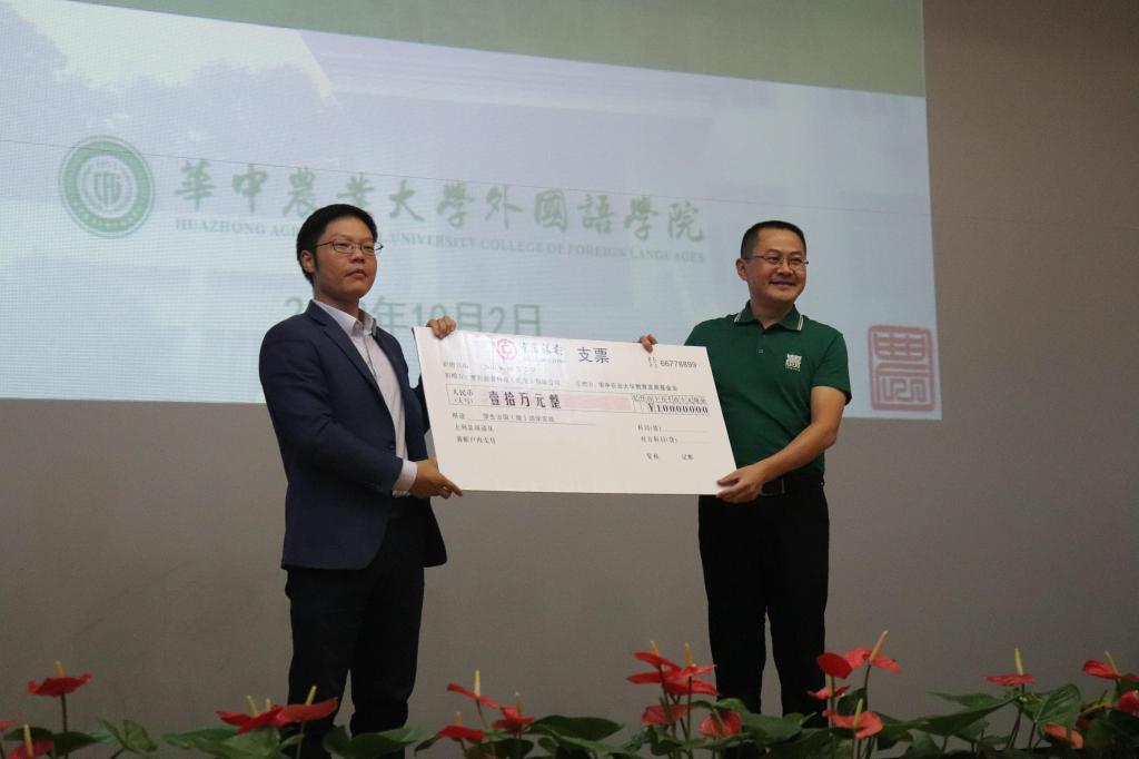 院庆筹备之际,学院得到了来自广大校友、在校师生以及多家企业的暖心微捐和慷慨捐资。罗客教育继去年为我院捐赠10万元设立奖学金后,今年再次捐资10万元用于奖励学生开展出国(境)交流访学实践活动。奖学金捐赠仪式上,姚孝军院长接受企业捐赠支票,吴平副校长为捐赠企业颁发捐赠证书。