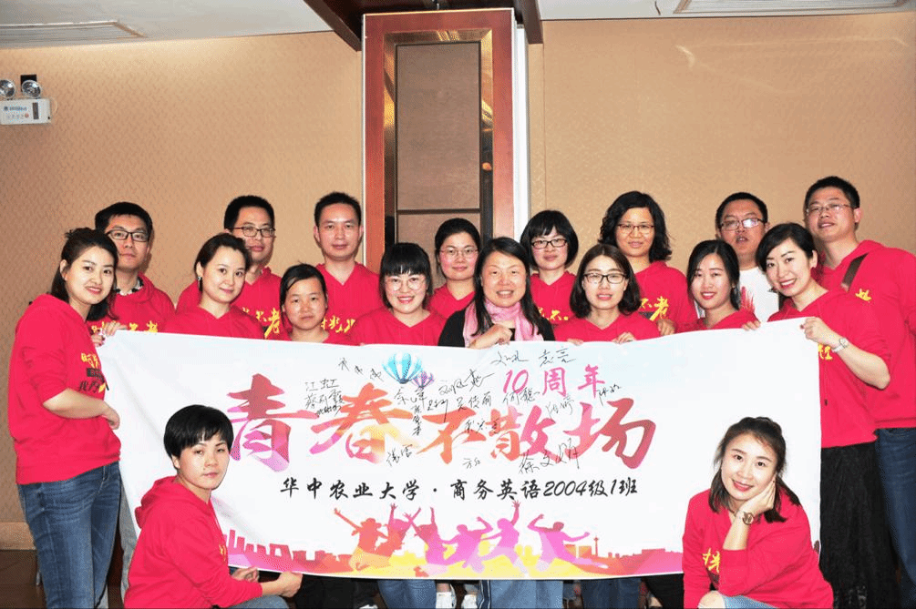 最后的最后,商务英语2004级1班的全体同学们,让我们一起真诚地祝愿母校120周年、外语系成立25周年生日快乐!乘风破浪会有时,直挂云帆济沧海!
