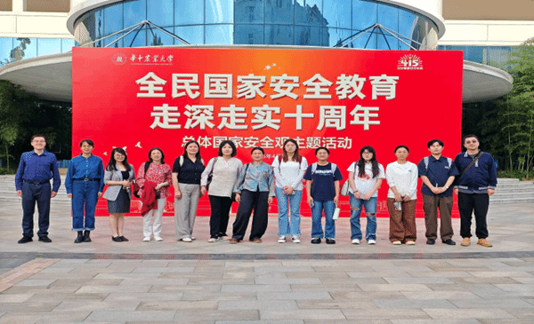 实践教育环节,师生党员集体前往大学生活动中心广场的全民国家安全教育日主题展区参观学习。通过图文展板、典型案例和多媒体演示,大家系统地学习了总体国家安全观的理论体系,重点掌握了政治安全、网络安全等核心领域防护要点。结合外语学科的专业特点,师生党员们还就涉外安全、文化安全等重要议题在现场展开了研讨,进一步加深了对国家安全相关知识的理解和认识。