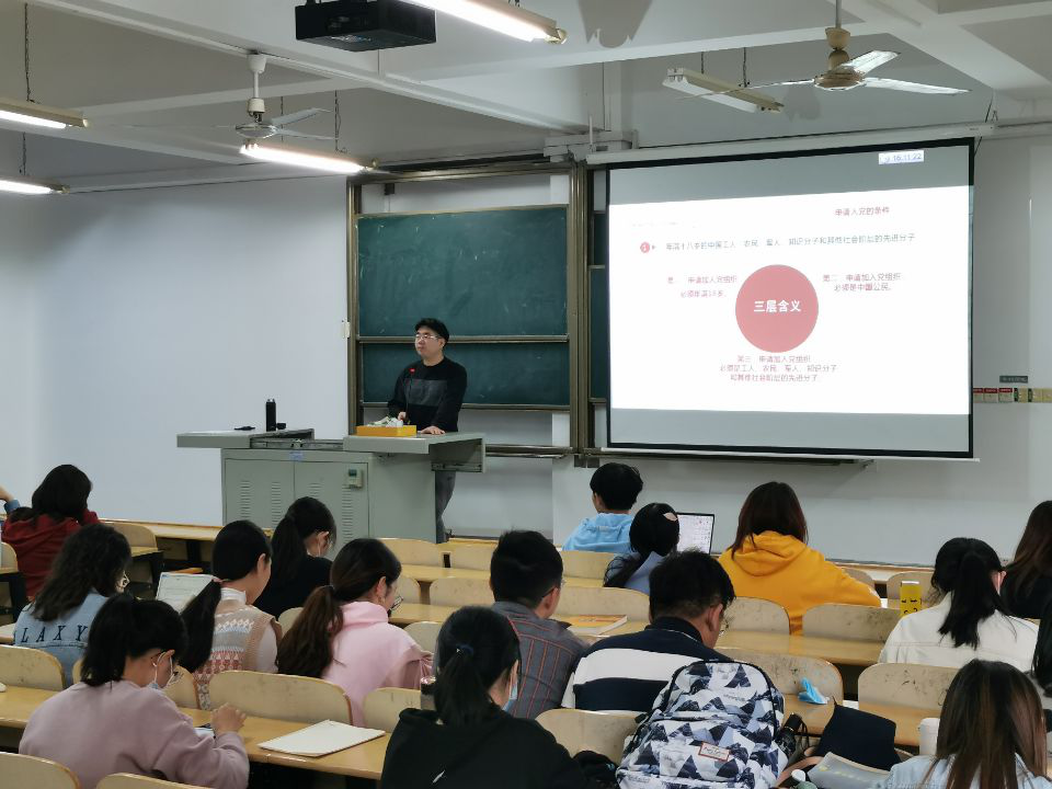 11月5日下午4:00,tyc122cc太阳成集团于二教101教室举办了主题为“入党的条件,权利和义务”的线下讲座。本次讲座邀请到工学院辅导员周熙主讲,20年秋季入党积极分子及部分预备党员参与了本次讲座。