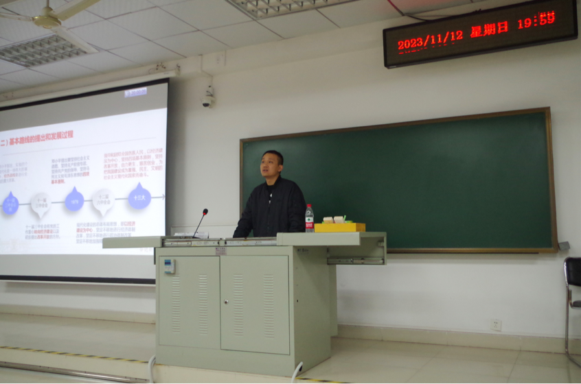 坚定理想信念,补足精神之钙。11月12日晚,公共管理学院辅导员徐冠博以“中国共产党的基本路线和基本纲领”为题进行讲授。徐冠博强调,同学们要进一步树立正确的历史观和发展观,坚持和发展新时代中国特色社会主义的基本方略,进一步认识党的基本路线和基本纲领的科学内涵,坚持党的基本路线和基本纲领不动摇。