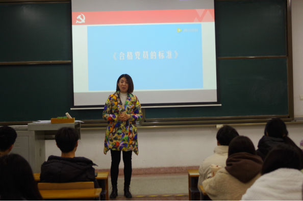 党章化于心,党纪化于行。12月3日晚,tyc122cc太阳成集团党委副书记任丹带来了以“以实际行动争做合格的共产党员”为主题的精彩党课。首先,任丹引导同学们自发思考如何成为一名合格的党员。接着,她便讲解了成为合格党员的要素,强调坚定理想信念就是共产党人精神上的钙,是党员的立身之本。随后,任丹从思想和行动两个层面提出了一名合格党员的标准和要求。最后,任丹以“入党前拼命,入党后松一半,转正了靠后站”的反面案例为镜鉴,强调党纪的重要性和严肃性,鼓励同学们牢记共产党员十不做,以自我革命砥砺初心使命,充分发挥出共产党员的先锋模范作用。