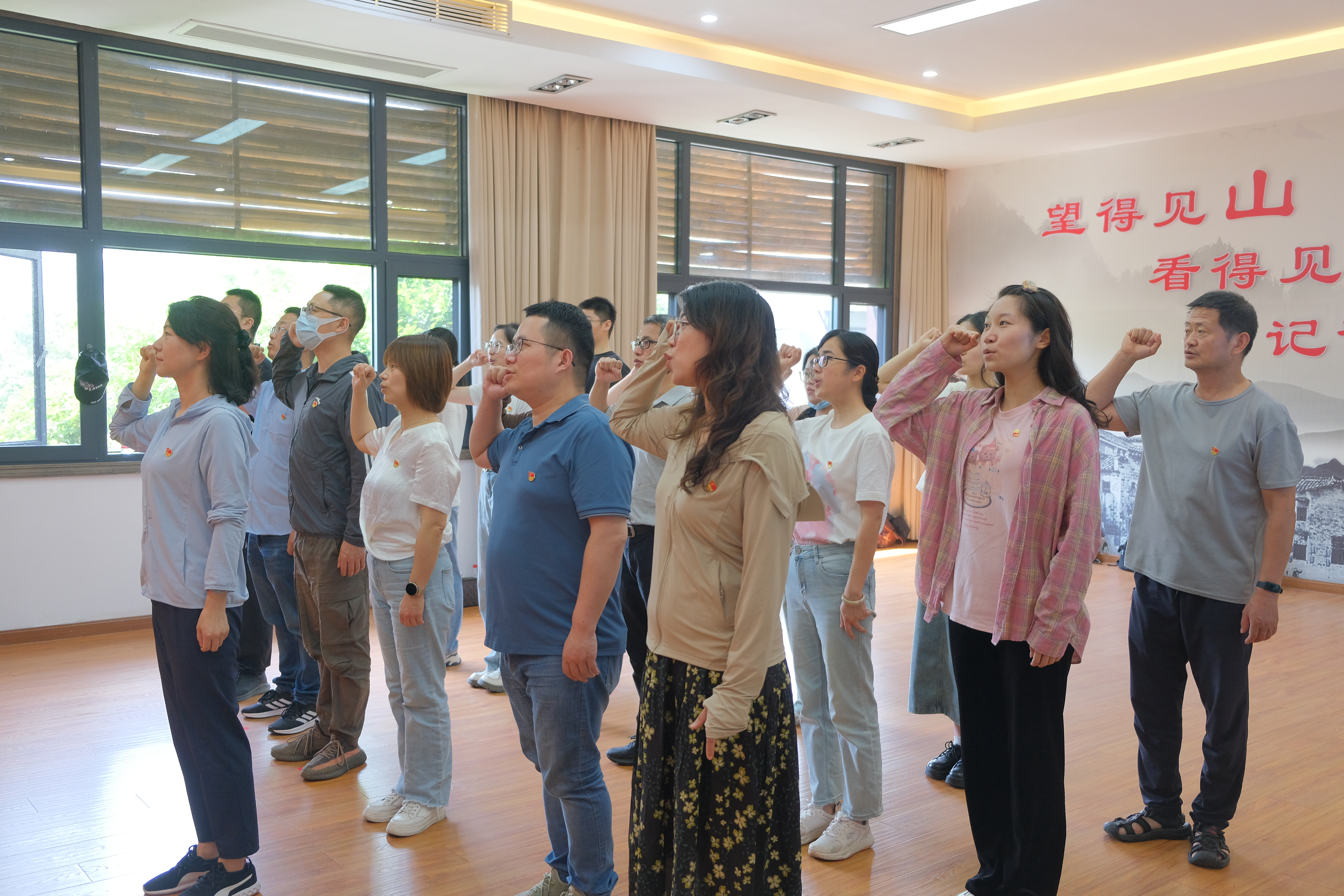 在峒山社区党员活动室,全体党员整齐地举起右手,庄严地重温入党誓词,表达“不忘初心、牢记使命”的崇高信念和坚定决心。随后,同志们前往峒山村廉政教育基地,陈列室中醒目的警钟造型的门提醒着每一位同志,要时刻抬头行路,低头看路,坚守廉洁自律的原则,确保决策和行为的公平公正,以赢得人民群众的信任和尊重。