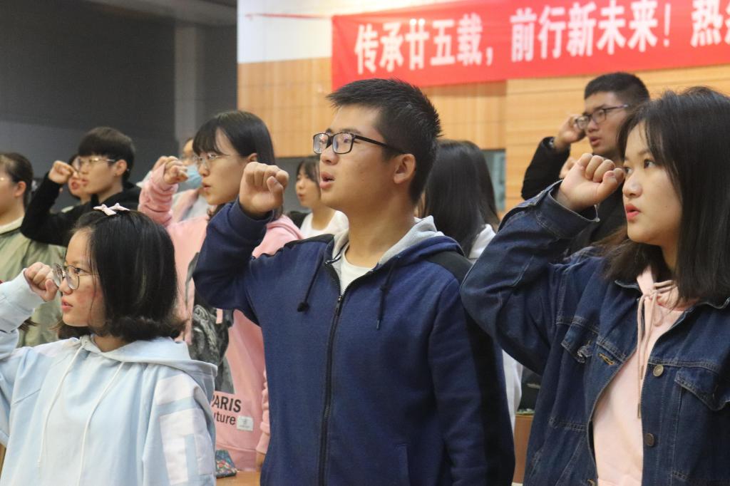 开班仪式上,主持人翟婧凡同学介绍了理研会会员管理条例。接下来由到场嘉宾进行发言。首先发言的是团团委副书记李培森,他对加入理研会的同学表示欢迎,并介绍了他心中的理研会:“理研会并不仅仅是所谓的‘又红又专’。它的作用是教导大家脚踏实地、努力前行。加入理研会不仅对入党有帮助,更对大学生活、人生规划起积极作用。”接着,党建办活动组织部部长吴静娴介绍了理研会历史、特点和作用。她指出,青年兴,国家兴;青年强,国家强。我们要以党员的标准严格要求自己,争取早日入党、为国效力。党建办副主任伊琪琪从理论学习意识、不要功利的学习和党建办介绍三部分分享了自己的感受。她讲到:“大学学习不能仅局限于专业知识,更要重视理论学习。理论学习已经成为了一种时代潮流。既然选择了理研会,就要认真学习、心无旁骛。”紧接着发言的是上届优秀会员代表钱贞贞同学。她表达了对新会员的热烈欢迎并介绍了理研会的各项活动以及参加活动的心得体会。最后,新会员代表刘惠瑶同学发言并带领全体会员进行宣誓。响亮的宣誓声传递出了同学们的信心与决心。
